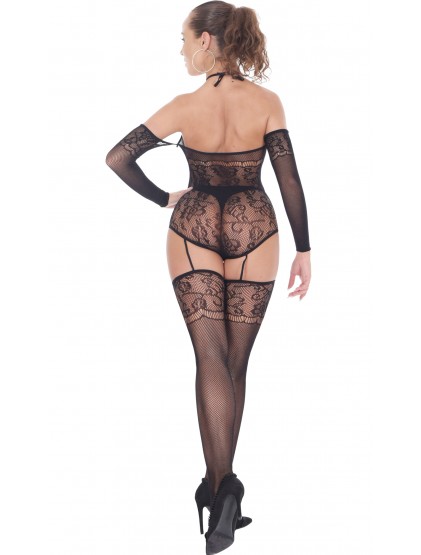 Orirose, SEXOWNY KOMPLET BODY STOCKING  sprężysta halka i rękawiczki typu „mitenki”, body, bielizna erotyczna