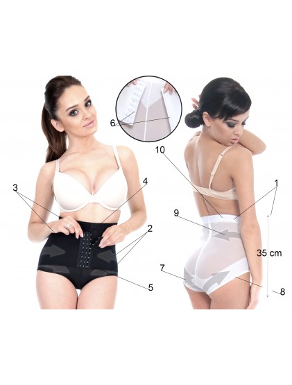 9) Majtki wyszczuplające o podwyższonym STANIE kształtują linię talii, modelują dolne i górne partie brzucha, wygładzają biodra i ujędrniają pośladki przy zachowaniu maksimum DYSKRECJI NOSZENIA.