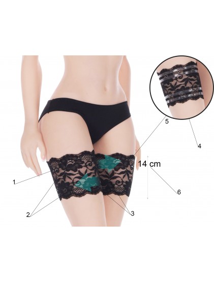 1) Opaski przeciw otarciom ud LACE to włoskie, ozdobne opaski przeciw otarciom ud marki Orirose, wykonane z wytrzymałej, sprężystej koronki o atrakcyjnym kwiatowym wzorze, na bazie poliamidu i elastanu - zapewniającej komfort i dyskrecję użytkowania.