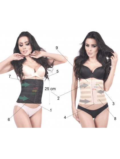 2) Wysoki 25 cm stan pasa wyszczuplającego równomiernie kształtuje i modeluje talię oraz dolne i górne partie brzucha przy zachowaniu optymalnej DYSKRECJI NOSZENIA.