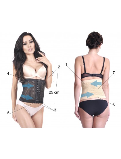 2) Wysoki 25 cm stan pasa wyszczuplającego równomiernie kształtuje i modeluje talię oraz dolne i górne partie brzucha przy zachowaniu optymalnej DYSKRECJI NOSZENIA.