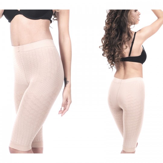 2) Tkanina płasko przylega do ciała w szybki i dyskretny sposób korygując (kształtując na nowo) figurę na odcinku od wcięcia talii, poprzez środkowe i dolne partie brzucha, talię, biodra, pośladki, uda po linię kolan.